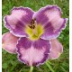 Fleurs rondes, rose mauve contrasté par large halo et bord pourpre, bord des pétales fortement ondulé, accentué par un fin liseré blanc.