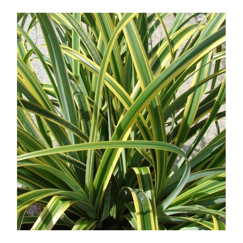 Originaire de la Nouvelle-Zélande. Forme de grandes touffes d'environ 60-70 cm de haut et env. 1 m de large, feuilles solides gracieusement arquées, vert mat bordé de jaune crème. Se plait en tout type de sols drainants au soleil à ou mi ombre.