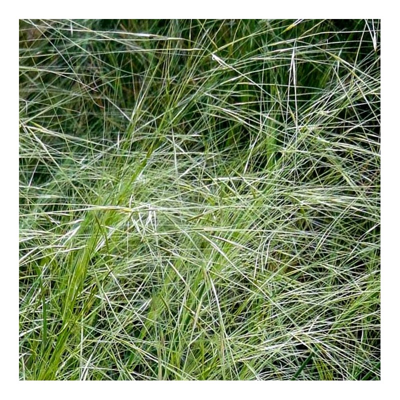 Nom commun : Stipe chevelue. Originaire d'Europe du Sud et d'Asie. Forme des petites touffes de fines feuilles vertes surmontées de fines hampes florales jusqu'à 70 cm de haut. Les inflorescences sont composées de longues arêtes, fines et rigides. Bonne résistance à la sécheresse.