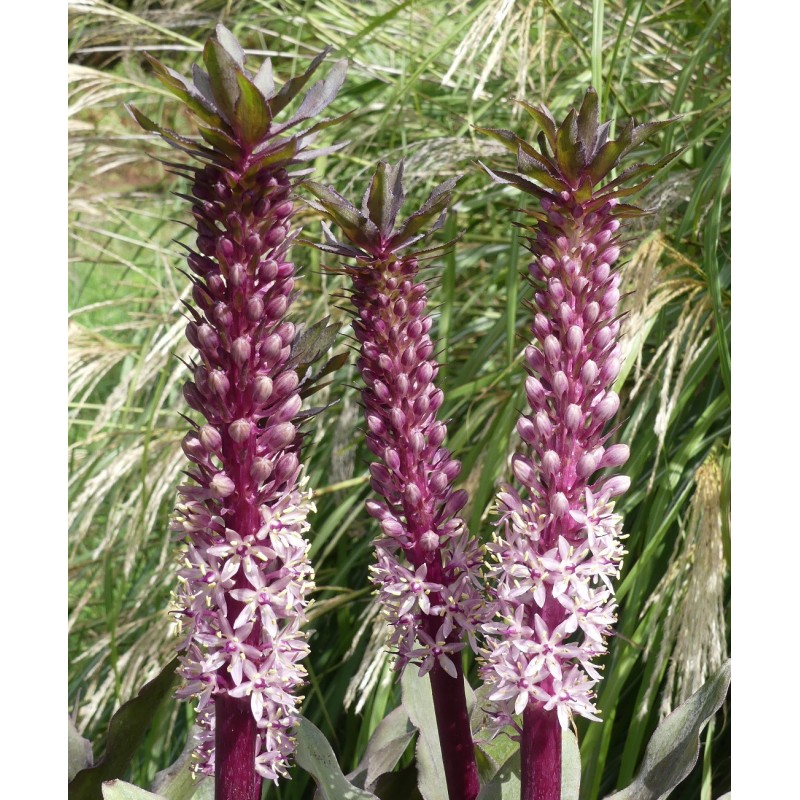 Cultivar à larges feuilles, pourpre lie de vin, floraison en larges épis blanc rose tendre. G11 cm