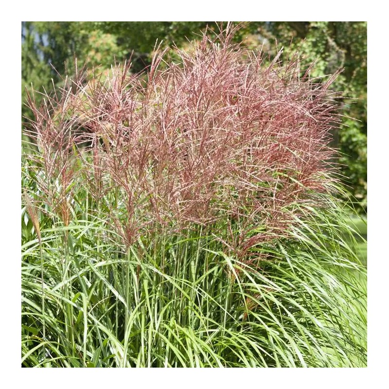 Cultivar récent, attrayant pour son port compact. Feuillage assez étroit, arqué, vert foncé, nombreuses inflorescences gracieuses vers fin d'été, rose pourpre à l'éclosion, devenant progressivement argenté ensuite.