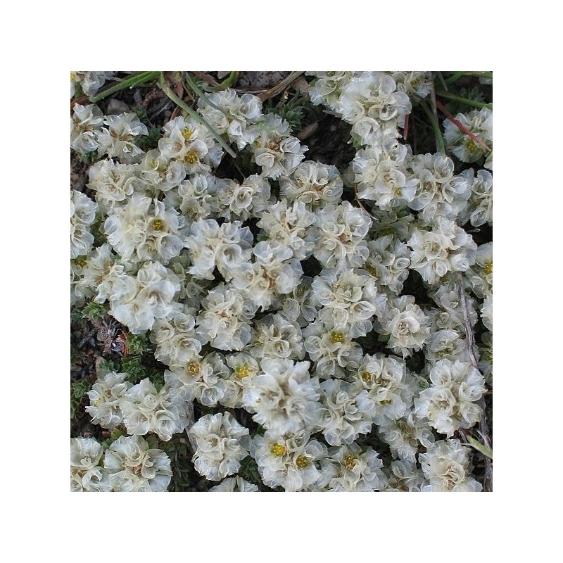 Couvre sol bas, à petites feuilles, gris argenté, formant assez rapidement un tapis serré. Floraison insolite en forme de petits toupets blanc, de texture soyeuse, dès fin de printemps, jusqu'en milieu d'été. Bonne résistance à la sécheresse