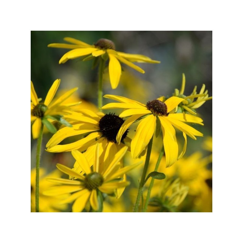 Vivace érigé aux allures champêtres, joli feuillage basale, étroit, cilié, nombreuses inflorescences dès le milieu de l'été en capitules jaune citron au centre noir.