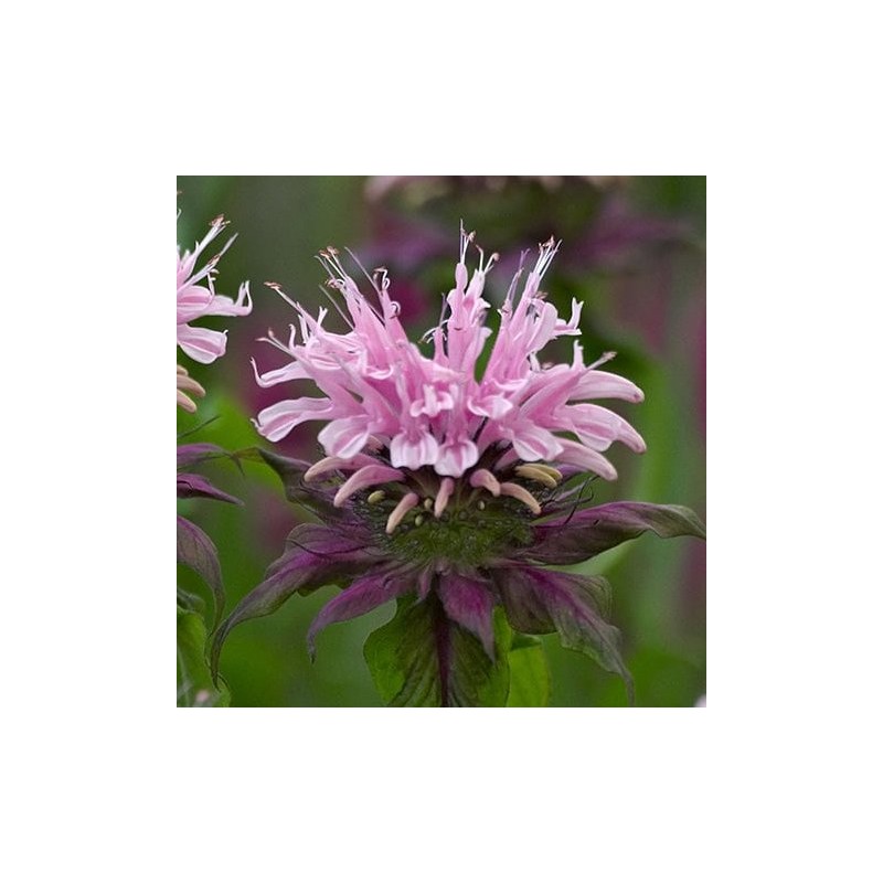 Vivace rustique, poussant en touffe érigée. feuillage aux arômes de bergamote. Floraison estivale en couronnes autour de la tige, ses fleurs tubulaires, rose tendre attirent un grand nombre d'insectes butineurs.