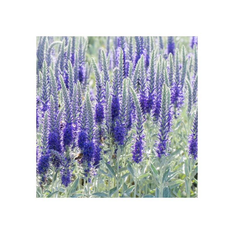 Joli couvre sol semi persistant pour milieu rocailleux. Feuillage étroit, gris argenté, feutré, complété par une floraison estivale en épis, bleu violet saturé. Demande un sol drainant et un bon ensoleillement. Bonne résistance à la sécheresse.