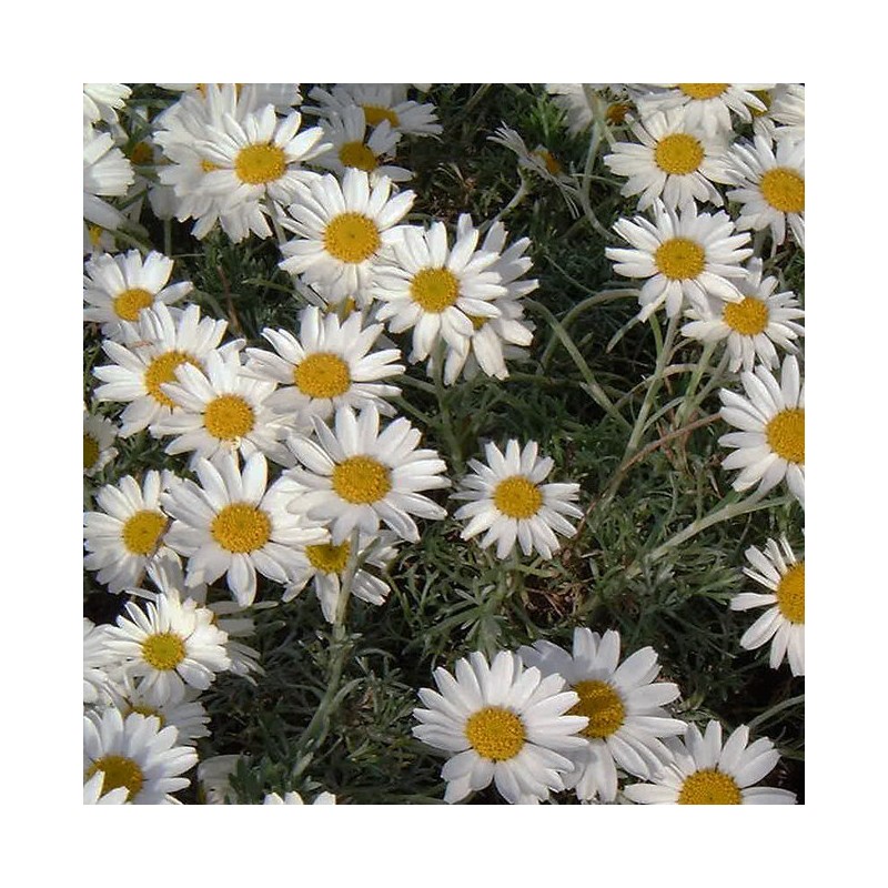 Sous arbrisseau originaire de l'Atlas Marocain, poussant en coussin compact et arrondi. Feuillage persistant, argenté luisant, profondément incisé. Sa floraison en forme de petites marguerites s'étale de mars à octobre. Résiste bien à la sécheresse.